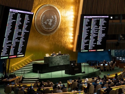 За эту резолюцию проголосовали представители 120 стран. Представители 10 государств воздержались. А вот 50 стран во главе с США голосовали против. Разумеется, против оказались Великобритания, Германия. Но в этом же списке с ними рядышком и Франция, и Канада, и Австралия, и Швеция с Норвегией, и Бельгия с Нидерландами. Ну и далее по списку все те, кто сейчас входит в состав «верных сторонников» мира, основанного на американских правилах.