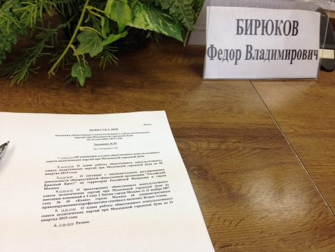24 сентября 2015 года член Президиума партии "РОДИНА" Фёдор Бирюков принял участие в первом после летнего перерыва заседании Общественного консультативного совета политических партий при Московской городской думе.