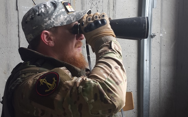 Здесь есть всё, чтобы учиться воевать. В момент нашего приезда идут занятия по бесшумному передвижению. Судя по удовлетворенному выражению лица командира, занятия идут успешно. Бойцы ревностно следят за реакцией Арсения, но добавить строгости никогда не помешает.