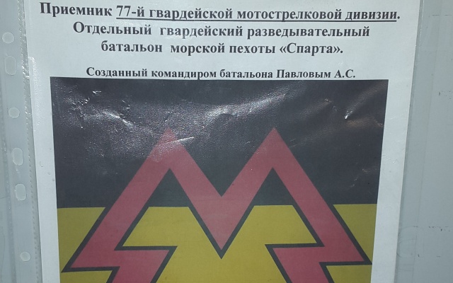 Говоря об истории батальона "Спарта", необходимо упомянуть 77-ю Отдельную Гвардейскую Бригаду морской пехоты, которая с честью прошла весь путь Великой Отечественной войны, встретив Победу в Берлине. Новая история бригады началась в 99-м году в Дагестане, туда и попал служить Арсений Павлов. По его словам, в ней служил, там впитал и принёс с собой все славные традиции морпехов: отличную боевую подготовку, силу духа, умение сражаться и главный принцип: идти вперед и не сдаваться. Имя легиона древнегреческих воинов бойцы себе буквально завоевали кровью:
