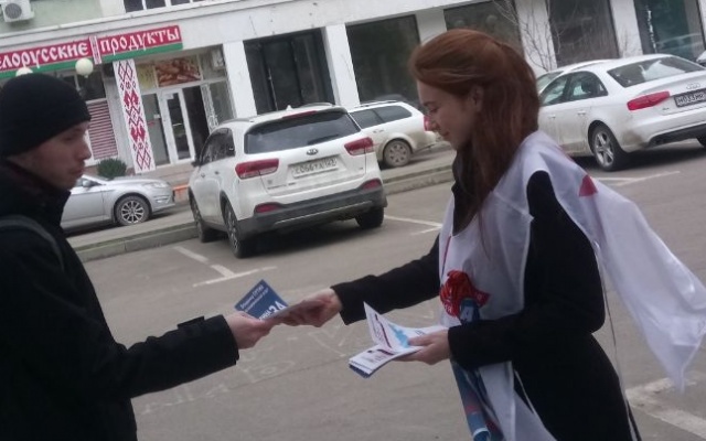 Краснодарские партийцы продолжают акцию «Все на выборы!», информирующую граждан о предстоящих в ближайшее воскресенье выборах Президента Российской Федерации.