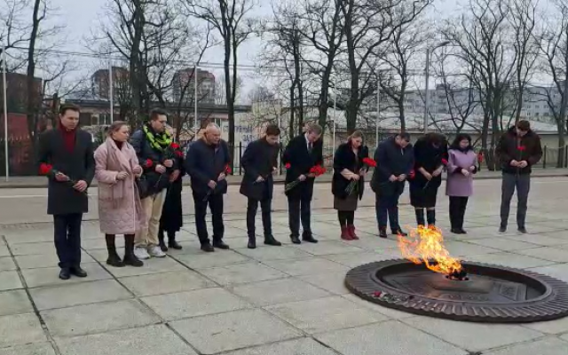 Во второй день, команда Калининградской "РОДИНЫ" вместе с гостями из столицы возложили цветы к Вечному огню у памятника 1200 гвардейцам.