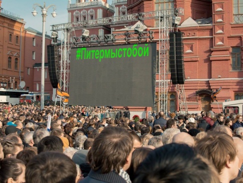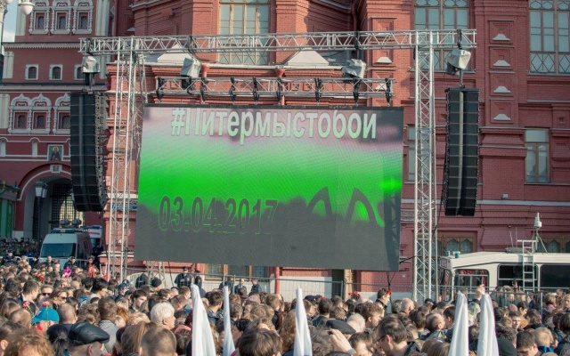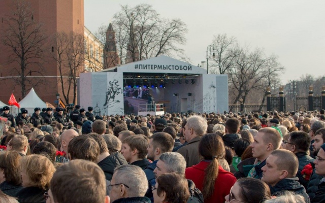 6 апреля 2017 года в Москве состоялся вечер памяти жертв террористического акта в Санкт-Петербурге. На Манежную площадь вышли более 50 тысяч человек, выразив тем самым солидарность с жителями северной столицы и продемонстрировав гражданское единство и мужество перед лицом террористических вызовов.