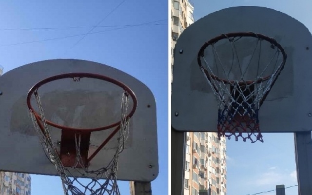 На днях Елене Коньшиной удалось сделать еще одно небольшое, но нужное и доброе дело – по ее обращению заменили сетку баскетбольного кольца на спортивной площадке около Солнечной, 7.