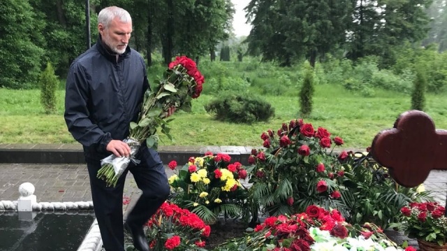 Затем делегация партии "РОДИНА" во главе с Алексеем Журавлевым возложила цветы к могиле Олега Мамиева.