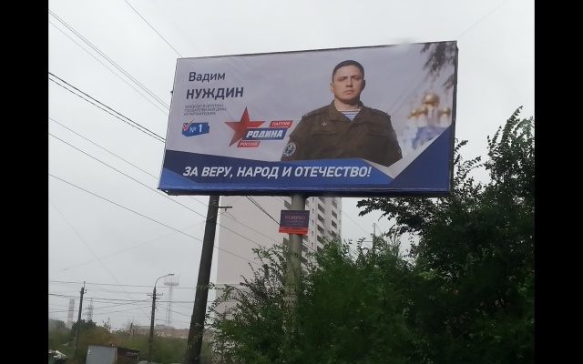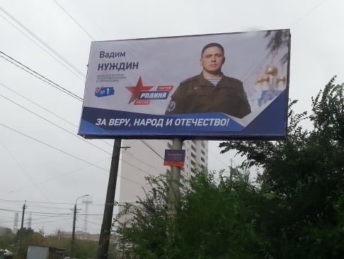 По пути, двигаясь в плотном потоке часа пик, автомобилисты и пассажиры общественного транспорта обращают внимание на яркие баннеры, которые напоминают избирателям, что партия "РОДИНА" - первая в бюллетене.
