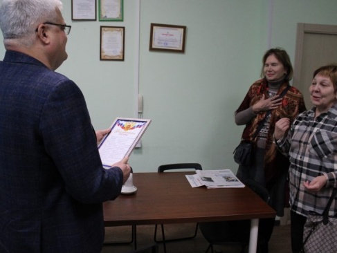 Заглянула на прием и делегация жильцов дома № 54 по ул. Народная. Жители пришли вручить депутату свою благодарность за помощь и содействие в ликвидации вредных выбросов от соседних промышленных предприятий.