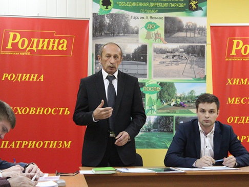 Поскольку мероприятие проводилось при поддержке партии "РОДИНА", руководитель аппарата Андрей Зайцев наметил основной вопрос разговора: о дальнейшей судьбе наших парков.