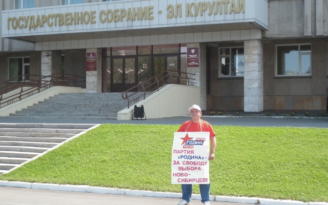 5 августа 2015 года в городе Горно-Алтайске партия "РОДИНА" провела одиночный пикет у избирательной комиссии Республики Алтай с лозунгом "Партия "РОДИНА" – за свободу выбора новосибирцев!" Пикет проводился в рамках всероссийской акции "Улица – за партию "РОДИНА"!