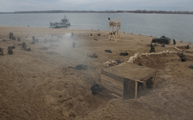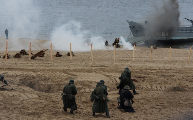 На второй очереди набережной реки Волги была организована масштабная и зрелищная военно-историческая реконструкция "Керченско-Эльтигенской десантной операции", посвященная 75-летию освобождения Крыма и той важной роли, которую сыграли в боях за полуостров морские стрелковые бригады, сформированные в Куйбышевской области во время войны.