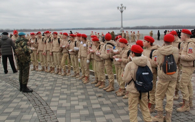 Самарское региональное отделение партии "РОДИНА" обеспечивало работу полевой кухни, угощало участников мероприятия вкусной армейской кашей и горячим крепким чаем.
