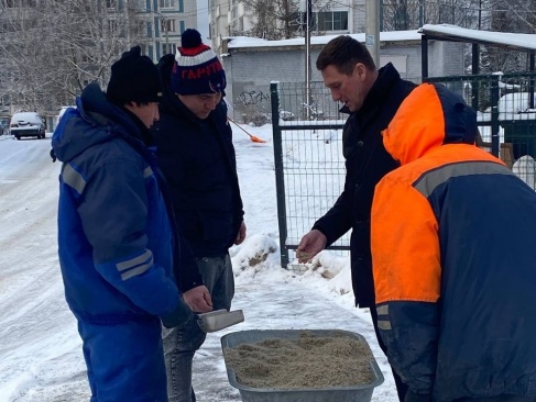 Он проверил работу сотрудников МБУ "Благоустройство", которые приводят в порядок улицы и дворы округа: чистят дорожки, тротуары и обрабатывают антигололедной смесью.