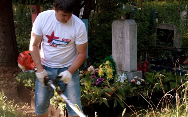 Председатель регионального отделения партии "РОДИНА" в Ярославской области Тарас Сидорин принял участие в обустройстве могил защитников Родины на Игнатовском кладбище.