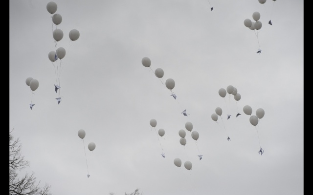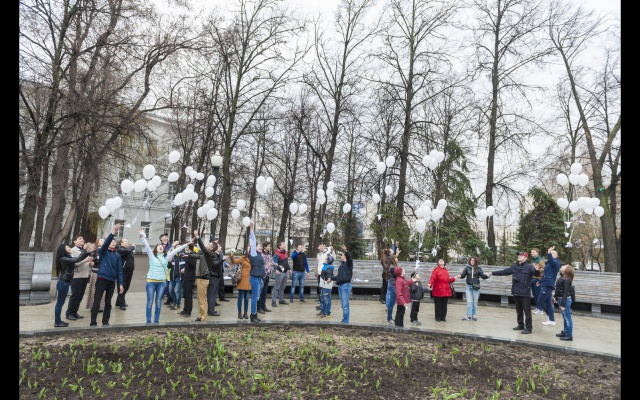 Участники, люди разных возрастов, большинство, конечно, студентов, сложили из бумаги белых голубей, по технике оригами. Тех, кто делал это впервые научили более опытные участники. Затем каждого "голубя мира" привязали к белому воздушному шару. Выстроившись в слово "мир", в едином порыве под дружный хор "Мы - за мир на Украине!" участники "запустили" в небо своих "голубей". К слову, в акции принимали участие и просто случайные прохожие-гости из Москвы, заинтересовавшиеся действом и поддержавшие идею мира на Украине.
