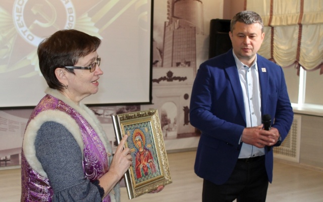 Ольга Николаевна Баранова, директор Самарского Дворца ветеранов, от имени ветеранов тепло поблагодарила Валерия Барсука за неизменное внимание к ветеранским проблемам, за добрые пожелания, поздравления и подарки. Ольга Николаевна обратилась к Валерию Барсуку с просьбой предать вышитую ветеранами икону самарским воинам, которые участвуют в спецоперации на Украине. В кратчайшие сроки икона была доставлена в расположение Росгвардии.